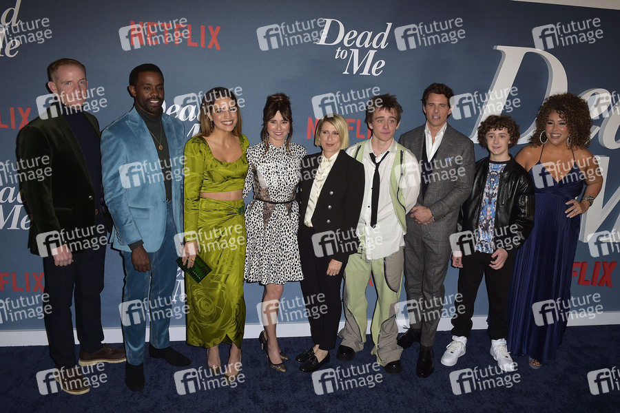 Marc Evan Jackson, Brandon Scott, Natalie Morales, Linda Cardellini, Liz Feldman, Sam McCarthy, James Marsden, Luke Roessler und Diana Maria Riva bei der Premiere der 3. Staffel der Netflix TV-Serie 'Dead to Me' im Netflix Tudum Theater . Los Angeles, 15.11.2022