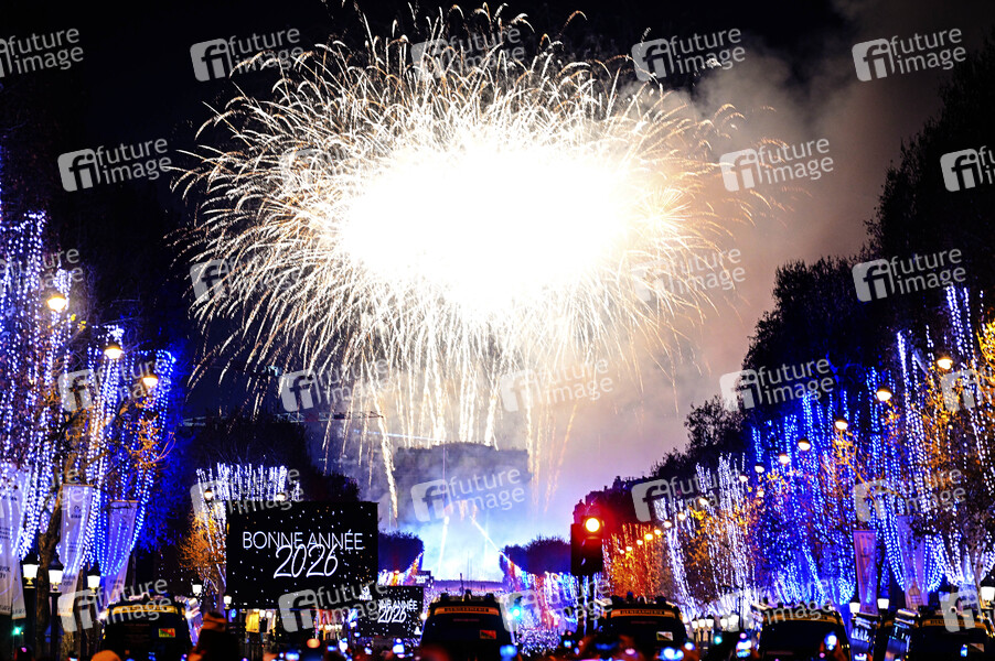 Silvesterfeuerwerk 2026 auf der Champs Elysees. Paris, 01.01.2026