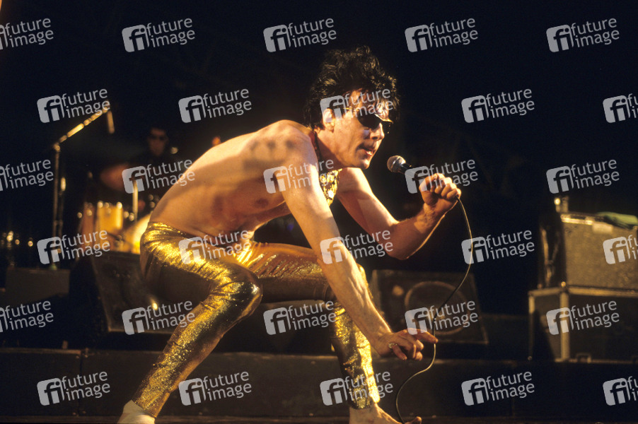 Lux Interior von The Cramps live im Hammersmith Odeon. London, 16.03.1986