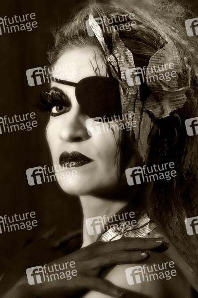 Bodypainting, Erotik, Frau, Mädchen, nackt, drinnen, weiblich, Körperkunst, Kunst, Malerei, Augenklappe, erotic, woman, girl, nude, indoor, female, body art, body painting, eyepatch