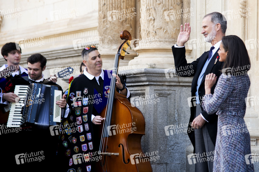 König Felipe VI. von Spanien und Königin Letizia von Spanien bei der Verleihung des Premio Miguel de Cervantes für Literatur an Luis Mateo Diez in der Universidad de Alcalá. Alcalá de Henares, 23.04.2024