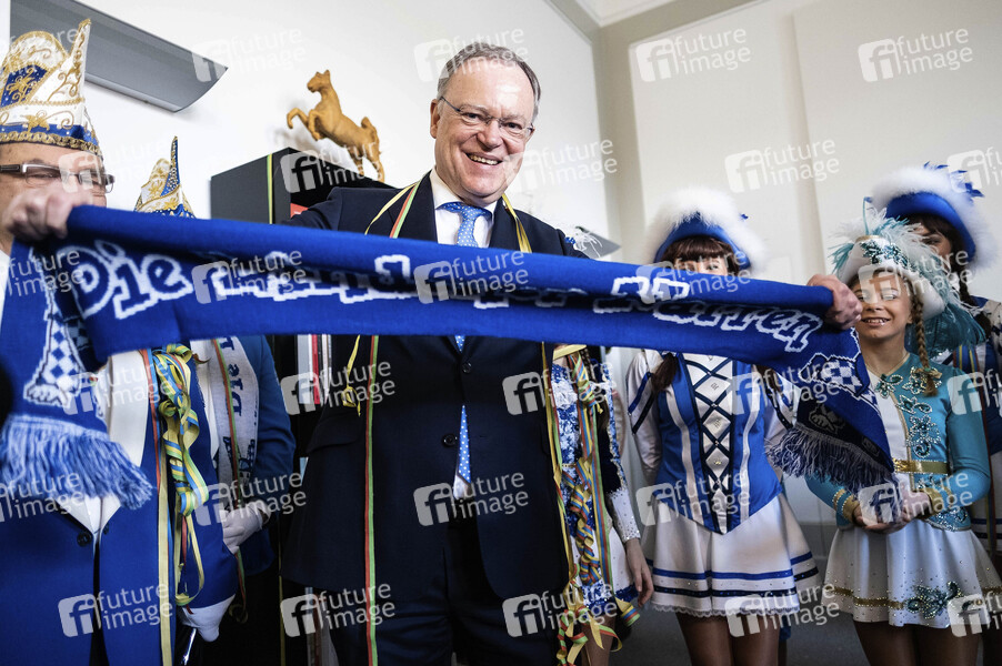Stephan Weil bei einem Besuch der Lindener Narren zur Rosenmontagsparty in der Staatskanzlei. Hannover, 04.03.2019