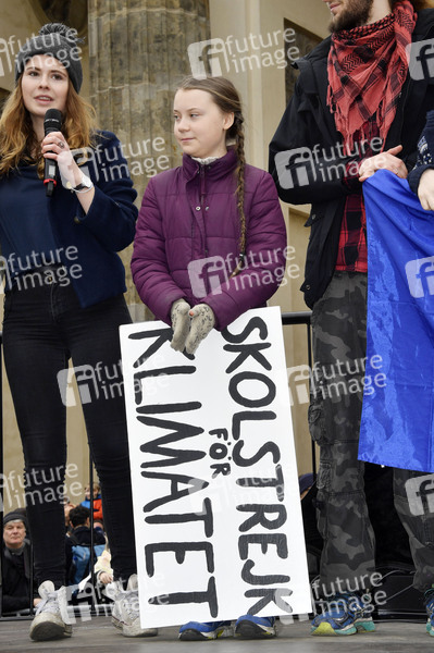 Luisa Neubauer und Greta Thunberg bei der 'Fridays for Future' Schülerdemonstration gegen die Klimapolitik vor dem Brandenburger Tor. Berlin, 29.03.2019