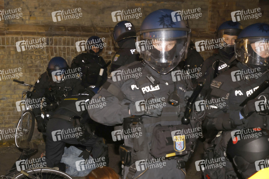 Bei einer Demo gegen die Räumung des linksautonomen Bauwagen-Camps 'Köpi' in Berlin-Kreuzberg ist es zu Ausschreitungen gekommen. Dabei wurden Polizisten mit Flaschen, Steinen und Feuerwerkskörpern beworfen. Unbekannte haben in der Reichenbergerstraße Scheiben mehrerer Autos zerschlagen, Verkehrsschilder in parkende Autos gerammt und Dixieklos umgeschubst. Laut Polizei waren 7.000 bis 8.000 Teilnehmer vor Ort. Berlin, 15.10.2021