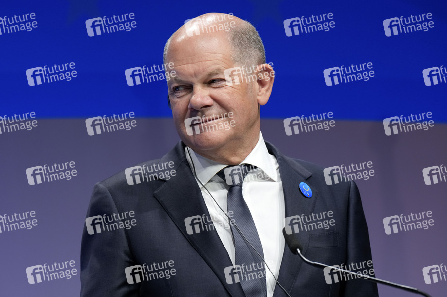 Olaf Scholz bei der Pressekonferenz zur Ukraine Recovery Conference 2024 unter dem Motto 'United in Defense. United in Recovery. Stronger together.', auf dem Messegelände. Berlin, 11.06.2024