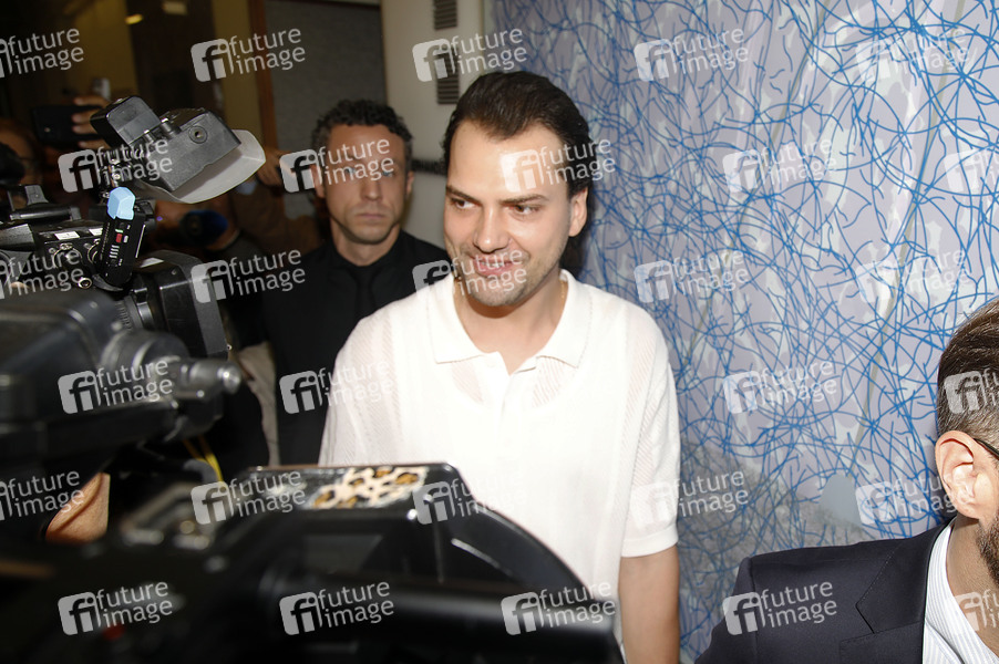 Jimi Blue Ochsenknecht beim Verlassen des Gerichtssaals nach dem Prozess wegen mutmaßlichen schweren Betrugs gegen Jimi Blue Ochsenknecht im Landesgericht Innsbruck. Innsbruck, 22.08.2025