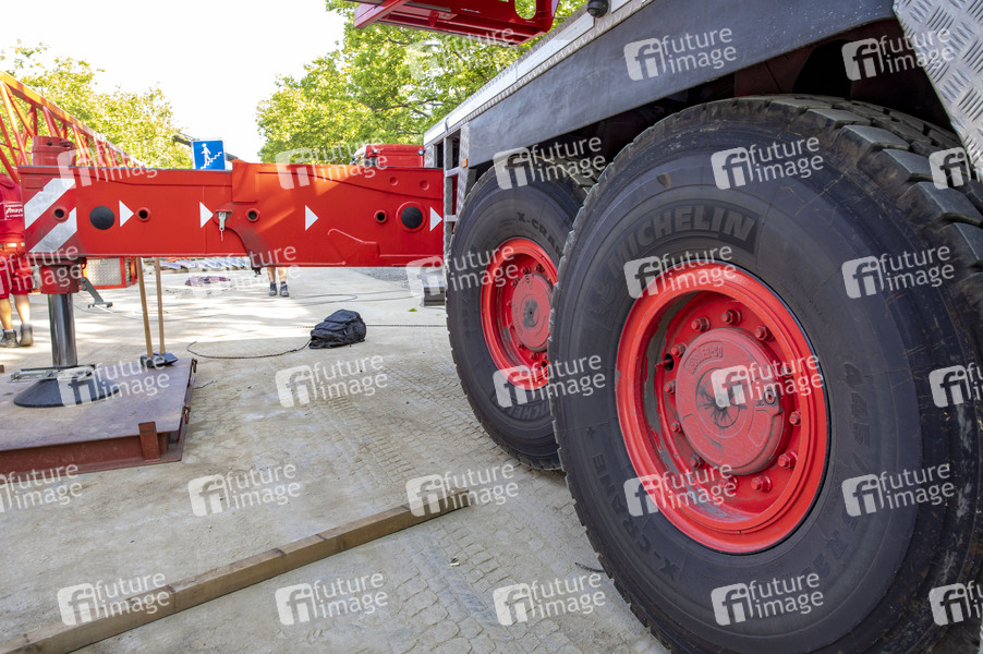 Kran-Demontage, Krandemontage, Kranabbau, Montageteam, Sorgfalt, Konterballast, Traglast, Schwertransport, Autokran, Fahrzeugkran, Kranwagen, Teleskopausleger, dieselelektrische dieselhydraulisch, Reichweite, Schwerpunkt, Gleichgewicht, Nivellierung, Sprechfunknavigation, Fahrzeugkranführer, zulässiges Gesamtgewicht, schwer, Kranbetreiber, Hebemaschine, Obendreherkran, Krantechnik, Kranvermietung, Kranzubehör, Baukranhandel, Krananstrich, Kranfarbe, Baustelle, Hochbau, Hochbaukrane, Tiefbau, Fachwerkträger, Drehkranz, Vorderer Auslager, hinterer Ausleger, Katzausleger, Nadelausleger, Turmkrankonstruktion, Wolffkran, Baumaschinen, Baumaschinenhersteller, Kranhersteller, Turmspitze, Konterballast, Ballastgewicht, Gegenausleger, Traglast, Widerlager, Aufstellfläche, Bodenplatte, Betongewichte, Stahlrohrkonstruktion, Stahlkonstruktion, Lastmoment, Krankomponenten, Fundamentanker, Turmabspannung, Innenkletterleiter, Kranführer, Kranfahrer, Krankanzel, Steuerkanzel, Symbolbild, Symbolfoto