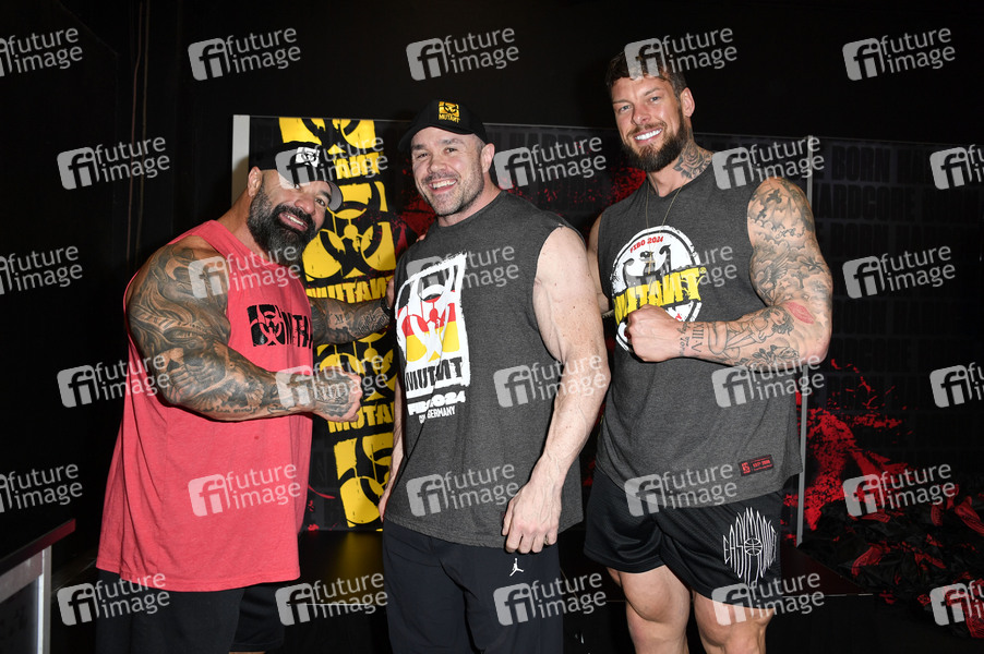 Dusty Hanshaw, Ron Partlow und Jamie Christian auf der internationalen Leitmesse für Fitness, Wellness und Gesundheit, sowie Bodybuilding, Kraftsport und Kampfsport FIBO 2024 in der Koelnmesse. Köln, 13.04.2024