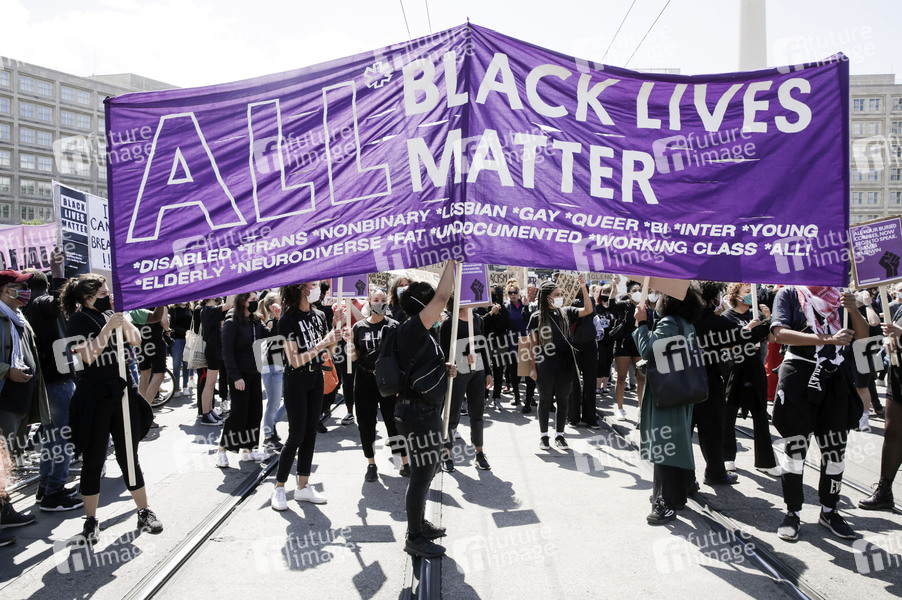 Demonstranten bei der 'Silent Demo' gegen Rassismus am Alexanderplatz. Berlin, 06.06.2020