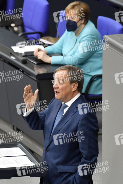 Angela Merkel und Armin Laschet in der 236. Sitzung des Deutschen Bundestages im Reichstagsgebäude. Berlin, 24.06.2021