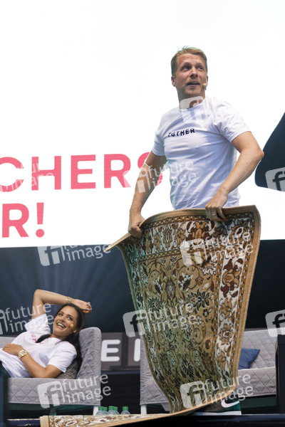 Oliver Pocher mit Ehefrau Amira Pocher mit dem Programm 'Die Pochers hier!' live im Kulturgarten in der Bonner Rheinaue. Das Bonn Live Kulturgarten Open Air Festival 2020 ist Europas erstes Open Air Festival unter Corona-Auflagen wegen der Covid-19 Pandemie. Bonn, 09.08.2020