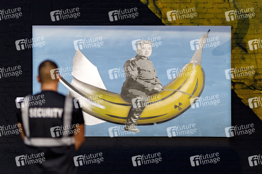 Security, Kim Jong-Un, Kim Jong-Un-Bild, Banane, Künstler, Bananen-Sprayer, Bananensprayer, Spray-Künstler, Spray-Kunst, Skulpturen, Bilder, Sprayer, Prominenz, Celebrity, Celebrities, Kunst, Art, Vernissage, Kultur, Ausstellung, Exhibition