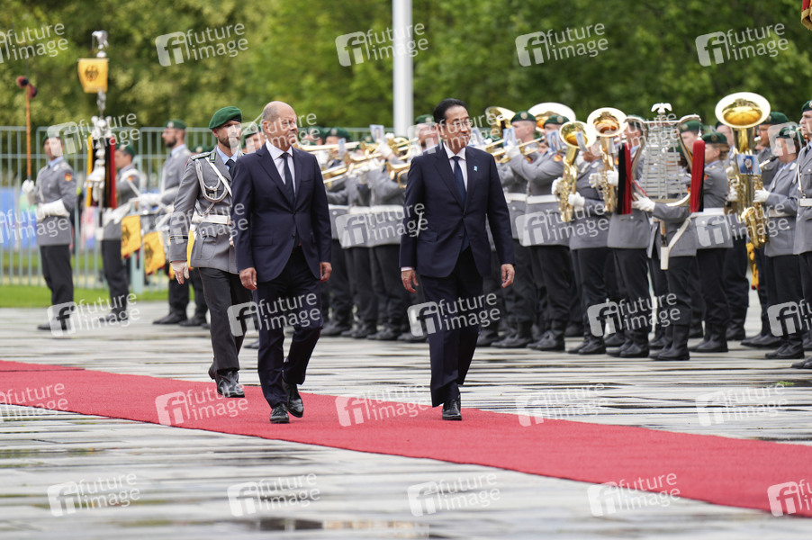 Olaf Scholz und Fumio Kishida beim Empfang des Premierministers von Japan mit militärischen Ehren und zu einem gemeinsamen Gespräch mit anschließendem Pressestatement im Bundeskanzleramt. Berlin, 12.07.2024