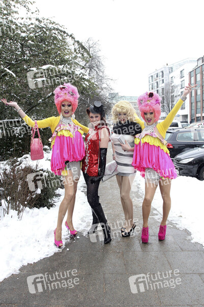 Eve Champagne, Devina Devil, Barbie Stupid und Lee Jackson bei der Hochzeit von Sven Florijan mit Sebastian 'Sebi' Krueger im Standesamt Eppendorf. Hamburg, 19.03.2013