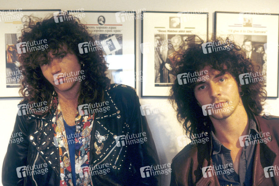 Gary Sharpe und Chris Ousey von Heartland bei einem Photoshooting in einem Hotel. London, 20.05.1991
