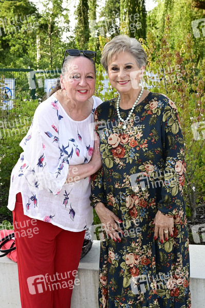 Sabine Denkinger und Dagmar Frederic bei der Premiere des Theaterstücks 'Maxe Baumann - Ferien ohne Ende' während der Beelitzer Festspiele 2025 auf der Freilichtbühne. Beelitz, 14.08.2025