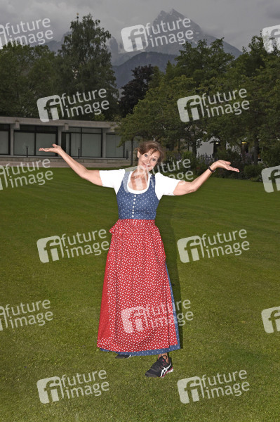 Barbara Weinzierl bei einem exklusiven Fototermin in Berchtesgaden, wo gerade die Dreharbeiten zur Fernsehserie 'Watzmann ermittelt' nach dem Corona Lockdown wieder aufgenommen wurden. Berchtesgaden, 01.07.2020