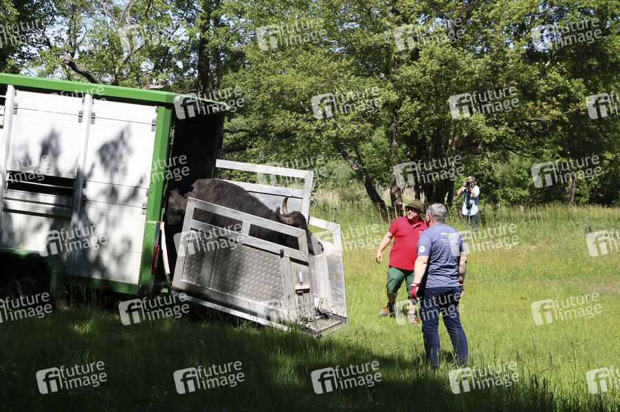 Auch in diesem Jahr bietet die Stiftung Preußische Schlösser und Gärten Berlin-Brandenburg (SPSG) einer kleinen Gruppe Wasserbüffel ein Sommerdomizil auf der Berliner Pfaueninsel. Die Tiere stammen wie im Vorjahr vom Ökohof Gut Darß (Mecklenburg-Vorpommern). Es handelt sich um die acht Jahre alte Kuh Olympia mit dem männlichen Kalb Odin, geboren am 18.04.2021, und um die zwölf Jahre alte Kuh Sabrina mit ihrem Kälbchen Simba, das ebenfalls am 18.04.2021 zur Welt kam. Damit wird die erfolgreiche Beweidung der Hechtlaichwiese fortgesetzt. (Quelle: SPSG Presse-Information) Berlin, 03.06.2021