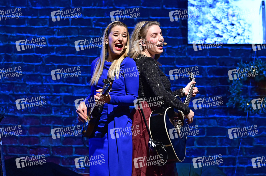 Stefanie Hertel und Johanna Mross von More than Words beim Familienkonzert 'Family Christmas 2024' in der Stadthalle Krone. Bautzen, 16.12.2024