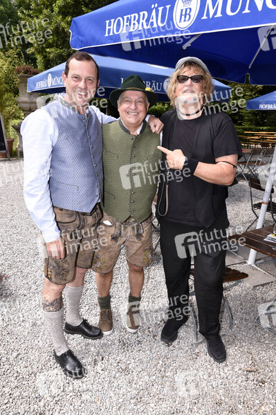 Michel Guillaume, Axel Munz und Martin Krug bei der Präsentation der Angermaier Trachtentrends 2021 im Park Café. München, 27.07.2021