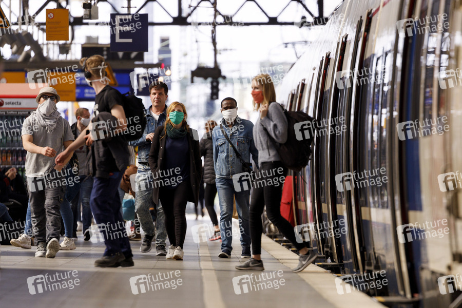 DB, Deutsche Bahn, Hauptbahnhof, Maskenpflicht in öffentlichen Verkehrsmitteln, öffentliche Verkehrsmittel, Bus, Busse, Bahn, Bahnen, Zug, Züge, maskiert, vermummt, Vermummung, NRW, Maske, Masken, Masken-Pflicht, Gesichtsmaske, Behelfsmaske, Behelfsmasken, Straßenbild, Öffentlichkeit, öffentlicher Raum, Maske tragen, Masken tragen, Mindestabstand, Lockerung der Corona-Maßnahmen, Tröpfcheninfektion, Spritzschutz, Eindämmung, Virenschutz, Übertragung, Maskenzwang, Bußgelder, Ordnungsgelder, Corona-Gesetze, Durchseuchung, immun, Immunität, Reproduktionszahl, Seuchenschutz, Virologie, Infektionsschutz, Atemschutz, Atemschutzmaske, Virenschutz, Schutzmaske, Schutzmasken, Atemschutzmasken, Maske, Masken, FFP1, FFP2, FFP3, FFP-Schutzklassen, Schutzklasse, Mundschutz, Mundschutzpflicht, Mund-Schutz, Mundschutz-Pflicht, Mund-Nase-Schutz, Mund-Nasen-Schutz, MNS, Ausbreitung, Corona-Schutz, Virus, Viren, Corona, Sars-CoV-2, Covid-19, Coronavirus, Coronaviren, Corona-Virus, Corona-Viren, Ansteckung, Ansteckungsgefahr, Epidemie, Pandemie, Infektion, Infektionen, schützen, Schutz, Maßnahmen, Neuansteckungen, Ansteckung, Coronakrise, Corona-Krise, Coronamaßnahmen, Corona-Schutz, Corona-Maßnahmen, Papiermaske, Papiermasken, Kontaktverbot, Ausgangsbeschränkungen, Mindestabstand, Ausgangssperre, Lockdown, Lock Down, Symbolfoto, Symbolbild