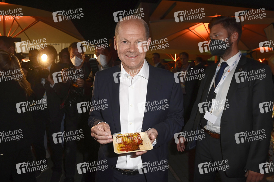 Olaf Scholz beim 'Triell - Dreikampf ums Kanzleramt' von ARD und ZDF mit den Kanzlerkandidaten im Studio Berlin-Adlershof. Berlin, 12.09.2021