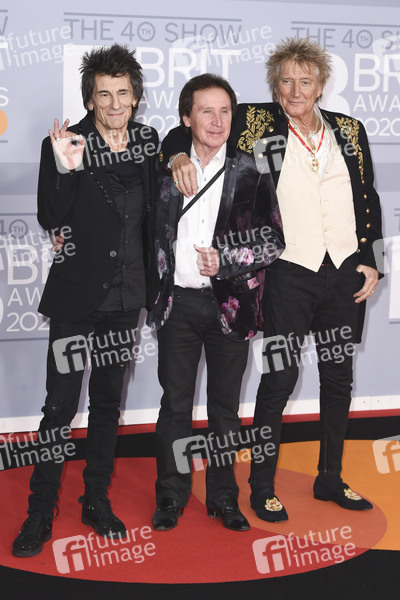 Ronnie Wood, Kenney Jones und Rod Stewart bei der Verleihung der BRIT Awards 2020 in der O2 Arena. London, 18.02.2020