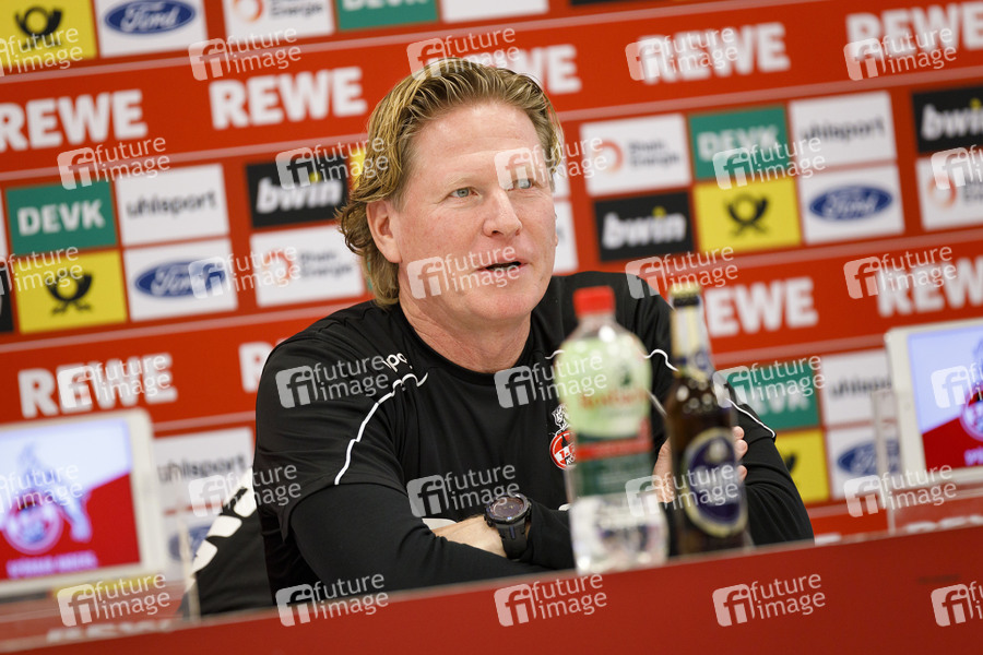 Trainer, FC-Trainer, Cheftrainer, Fußballtrainer, Pressekonferenz, 1. FC Köln, 1. Fussball Bundesliga, Saison 2019 2020, Geißbockheim, Mannschaft, Fußballspieler, Fussballspieler, Sportler, Sport, Match, Spiel, Fußball, Teamsport, Mannschaftssport, Fußballmannschaft, Fußballverein