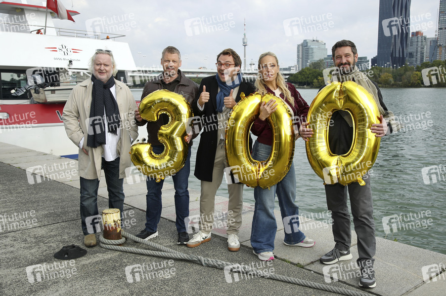 Gregor Seberg, Martin Gruber, Max Fischnaller, Lilian Klebow und Andreas Kiendl beim Fototermin anlässlich der 300. Folge am Set der ORF TV-Serie 'SOKO Donau / SOKO Wien' am Handelskai. Wien, 02.10.2025