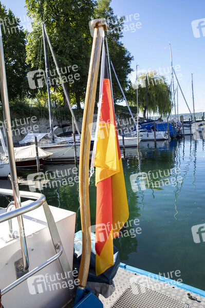 Heckflagge Deutschland beim exklusiven Fototermin bei der Wasserschutzpolizei-Station Überlingen. Überlingen, 19.08.2020