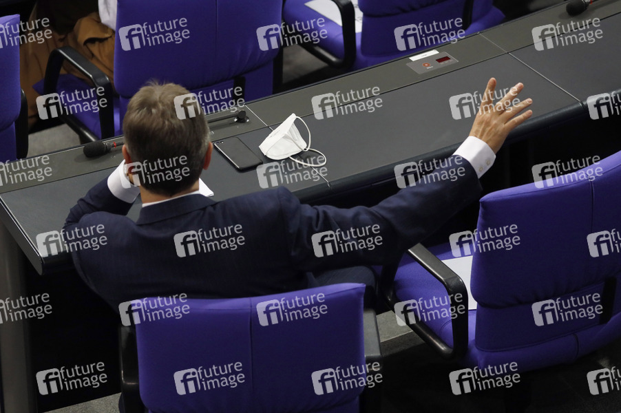 Politik, Reichstag, Sitzung, Regierung, Deutscher Bundestag, Debatte, Plenum, Plenarsitzung, Bundestagsdebatte, Rede, Demokratie, Abgeordnete, Parlament, Parlamentsgebäude, Bundesregierung, Volksvertreter, Maske, Schutzmaske, Gesichtsmaske, Infektionsschutz, Maskenpflicht, Mundschutz, Mundschutzpflicht, Corona, Corona-Regeln, Coronakrise, Covid19, Mundschutz tragen, Maske tragen, Symbolbild, Symbolfoto