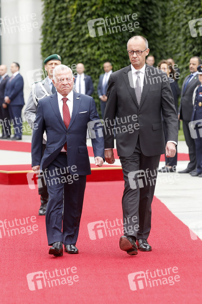 Abdullah II. bin al-Hussein und Friedrich Merz beim Empfang des Königs von Jordanien mit militärischen Ehren zu einem gemeinsamen Gespräch mit anschließendem Pressestatement im Bundeskanzleramt. Berlin, 29.07.2025