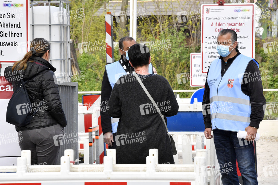Eröffnung einer Drive-In Corona-Teststation auf dem Parkplatz vor dem Estrel-Hotel. Berlin, 24.04.2020