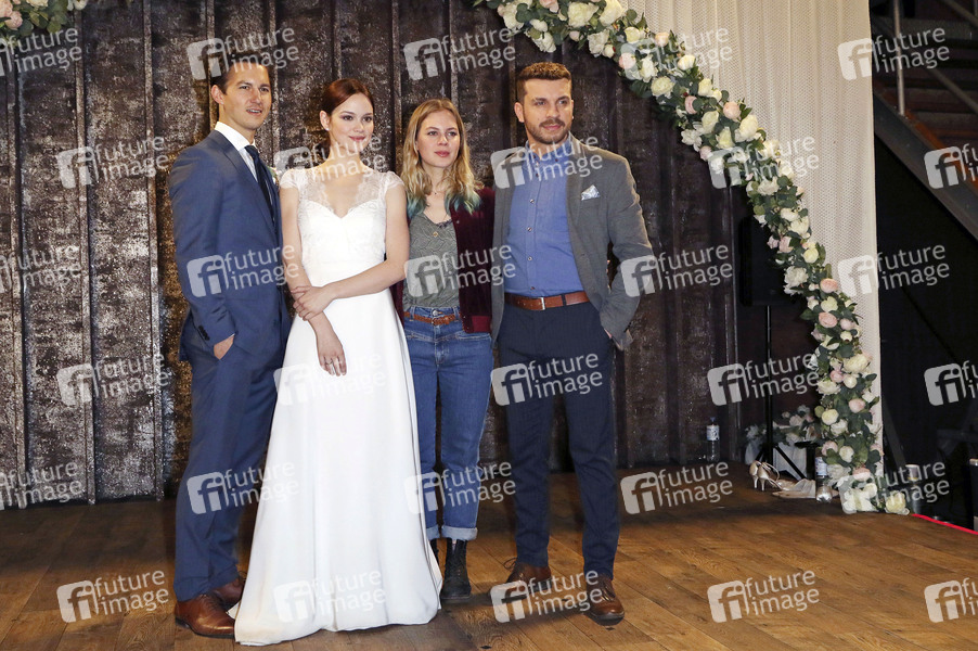 Tim Oliver Schultz, Emilia Schüle, Alicia von Rittberg und Edin Hasanovic beim Fototermin am Set des Kinofilms 'Hallo Again' auf der MS Bleichen. Hamburg, 15.04.2019.