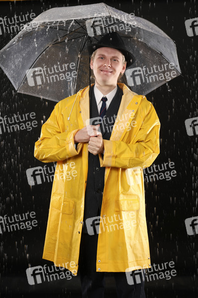 Fotoshooting, Unterhaltung, Entertainment, Kultur, Singin' in the Rain, Singing in the Rain, Musical, Regen, Wetter, Regenschauer, Nieselregen, Platzregen, Niederschlag, Gewitter, Wasser, Wetterprognose, Wettervorhersage, Regenschirn, Schirm, Regenjacke, Südwester, Regenkleidung, Regenwetter, Symbolbild, Symbolfoto