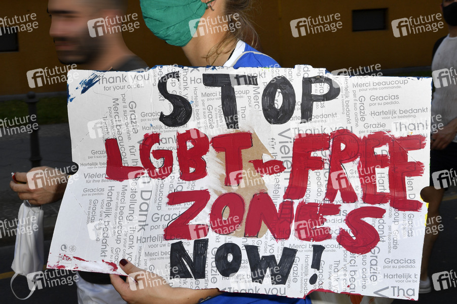Demonstrationszug mit dem Motto 'Berlin Pride 2020' vom Nollendorfplatz über Potsdamer Straße, Wilhelmstraße und Unter den Linden zum Alexanderplatz. Berlin, 27.06.2020