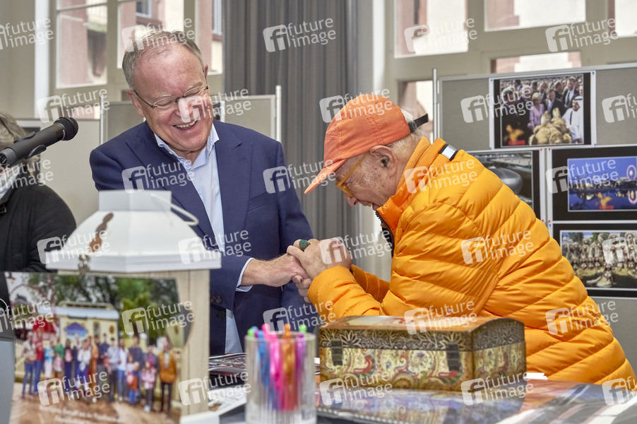 Stephan Weil und Hassan Mahramzadeh bei der Auszstellungseröffnung '25 Jahre EXPO 2000 - Bilder einer Weltausstellung' von Hassan Mahramzadeh unter der Schirmherrschaft von Ministerpräsident a.D. Stephan Weil im Bürgersaal vom Neuen Rathaus. Hannover, 26.10.2025