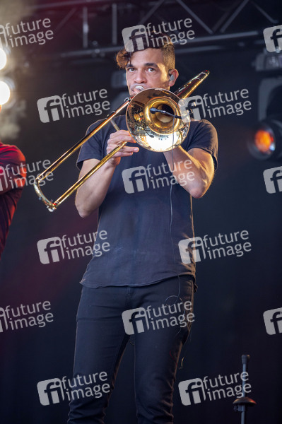 Musiker, Posaunist, Pop, Band, Musik, Konzert, Auftritt, Bühne, Stage, live, Unterhaltung, Entertainment, Kultur, Open Air