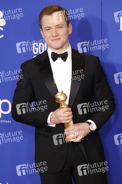 Taron Egerton mit dem Preis für den Besten Hauptdarsteller - Komödie oder Musical in 'Rocketman' bei der Verleihung der 77. Golden Globe Awards im Beverly Hilton Hotel. Beverly Hills, 05.01.2020
