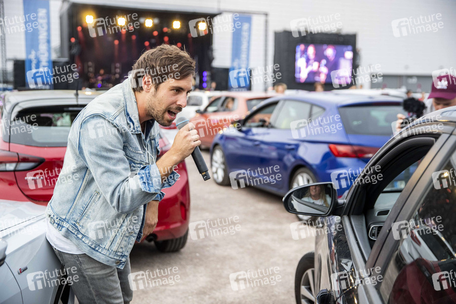 Musiker, Sänger, Pop, Musik, Konzert, Auftritt, Bühne, Stage, live, Unterhaltung, Entertainment, Kultur, Corona, Sars-CoV-2, Covid-19, Coronavirus, Coronakrise, Corona-Krise, Corona-Pandemie, Coronamaßnahmen, Corona-Schutz, Kontaktverbot, Mindestabstand, Social Distancing, Abstand, Abstandhalten, Abstandsregel, Auto, Autokonzertreihe, Autokonzert, Auto-Konzert