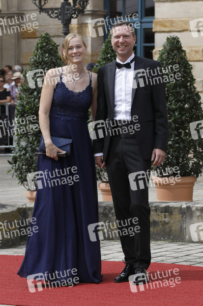 Florian Wiedemann mit Ehefrau Sandra bei der Eröffnung der 112. Richard-Wagner-Festspiele 2024 mit der Neuinszenierung von 'Tristan und Isolde' im Bayreuther Festspielhaus. Bayreuth, 25.07.2024