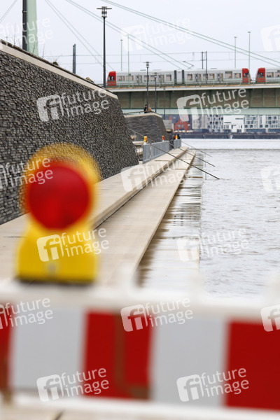 Rheinpegel, Fluss, Rhein, Pegelstand, Pegel, Hochwasser, Rheinboulevard, Pegelmarke, Hochwassermarke, Hochwasserwelle, Scheitelpunkt, Rhein-Pegel, Flussbett, Flut, Schifffahrt, Hochwasserschutz, Wasserstand, Mittelwasser, Tauwetter, Rheinschifffahrt, Rheinufer, Hochwasserschutzzentrale, Hochwasserwelle, Rheinuferpromenade, Pegel-Nullpunkt, Hochwasserlage, Hochwassermeldedienst, Hochwasserinformationsdienst, Wasserstände, Pegelstände, Wetterlage, ansteigendes Wasser, steigender Pegel, Hohenzollernbrücke, Rheinufer, Wetter, Symbolbild, Symbolfoto