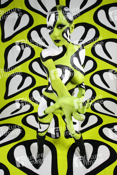 Bodypainting, Stoffdesign Anna Efverlund, Erotik, Frau, nackt, drinnen, weiblich, Muster, Chamäleon, erotic, woman, nude, indoor, female, chameleon