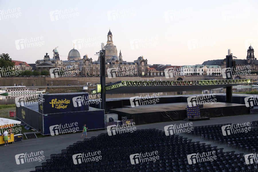Open Air Kino vor der Skyline von Dresden während der Premiere des Kinofilms 'Und der Zukunft zugewandt' im Rahmen der Filmnächte am Elbufer. Dresden, 22.08.2019
