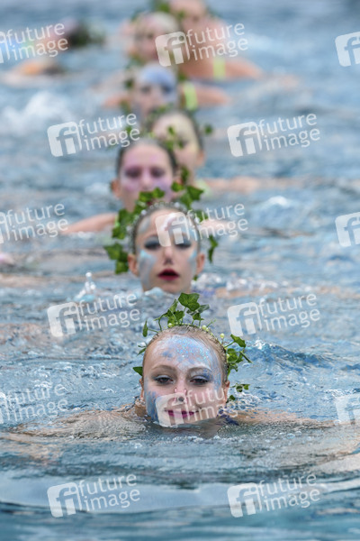 Aquapalooza Performance von Aquaplasma mit Synchronschwimmerinnen des Berliner Schwimm-Club Wedding, der Companie Transe Express und SchauspielerInnen und TheaterschülerInnen der Ballettschule Berlin beim Lollapalooza Festival im Olympiastadion und Olympiapark. Berlin, 08.09.2019
