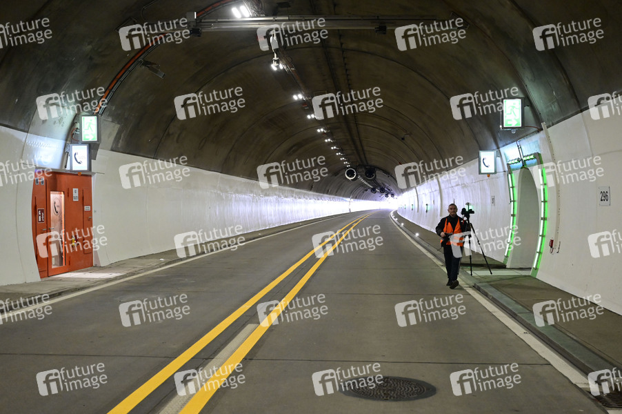 Pressetermin nach Abschluß der Sanierungsarbeiten in der Nordröhre (Bauröhre) und bevorstehenden Öffnung im Tunnel Königshainer Berge der Bundesautobahn 4,BAB 4 bei Görlitz. Der Tunnel Königshainer Berge ist mit 3281 m Länge einer der zehn längsten Straßentunnel in Deutschland. Er durchquert die namensgebenden Königshainer Berge. Kodersdorf, 28.02.2025