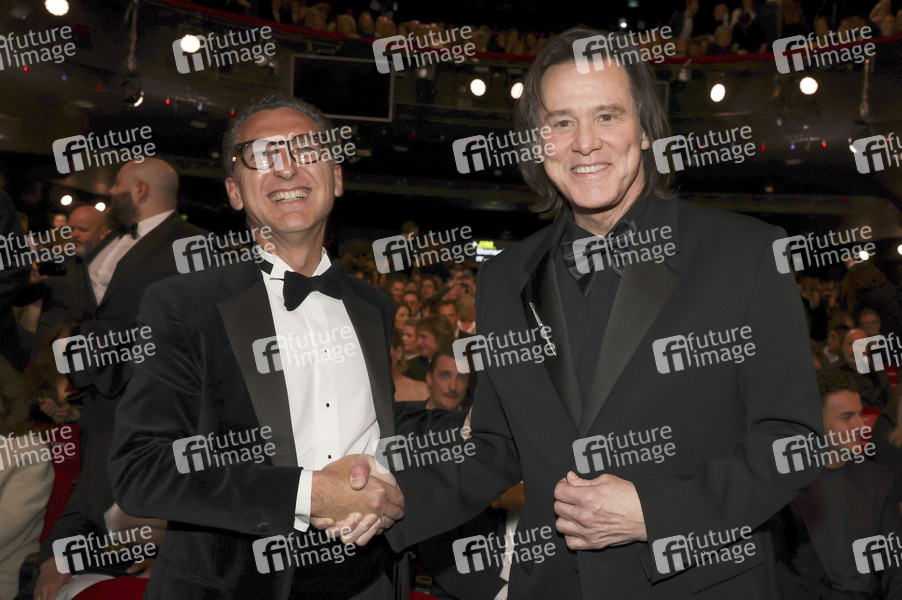 Maxime Saada und Jim Carrey mit dem Ehren-César bei der 51. César-Verleihung 2026 im Olympia-Theater. Paris, 26.02.2026