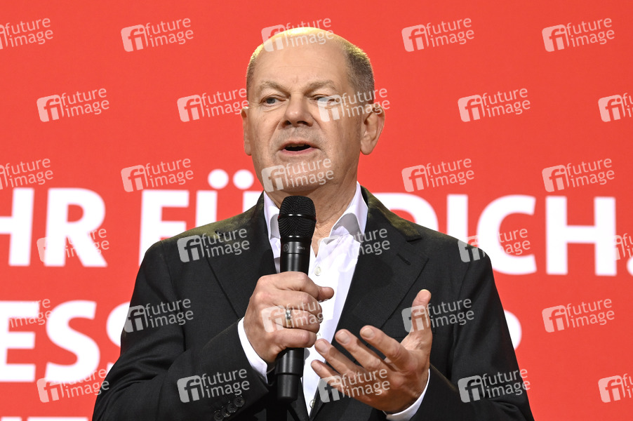 Olaf Scholz bei der Pressekonferenz zum Beschluss des SPD-Wahlprogramms für die Bundestagswahl 2025 im Willy-Brandt-Haus. Berlin, 17.12.2024