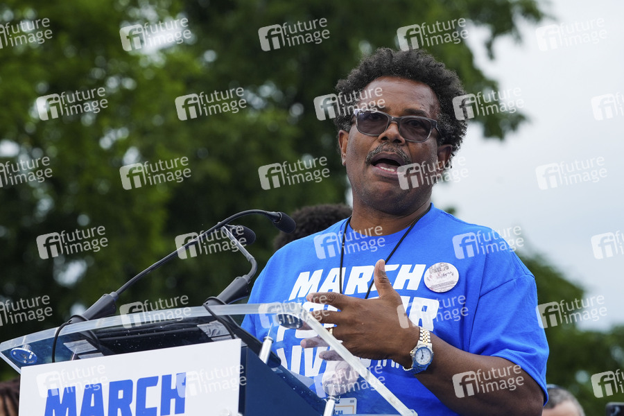 Garnell Whitfield Jr., Sohn eines der Opfer der Schießerei in Buffalo, spricht auf dem March for Our Lives. Tausende Menschen demonstrieren gegen die landesweite steigende Waffengewalt und fordern den Kongress auf, Schritte zu ihrer Beendigung zu unternehmen. March for Our Lives wurde von Überlebenden der Massenschießerei 2018 an einer High School in Parkland, Florida gegründet. Washington, 11.06.2022