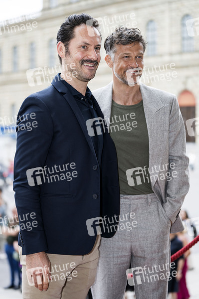 Marc Trefz und Wayne Carpendale bei der Ankunft zum Event 'Oper für alle 2025' im Rahmen der Münchner Opernfestspiele im Nationaltheater mit der Live-Opernübertragung von Wolfgang Amadeus Mozarts 'Don Giovanno' auf dem Max-Joseph-Platz. München, 06.07.2025